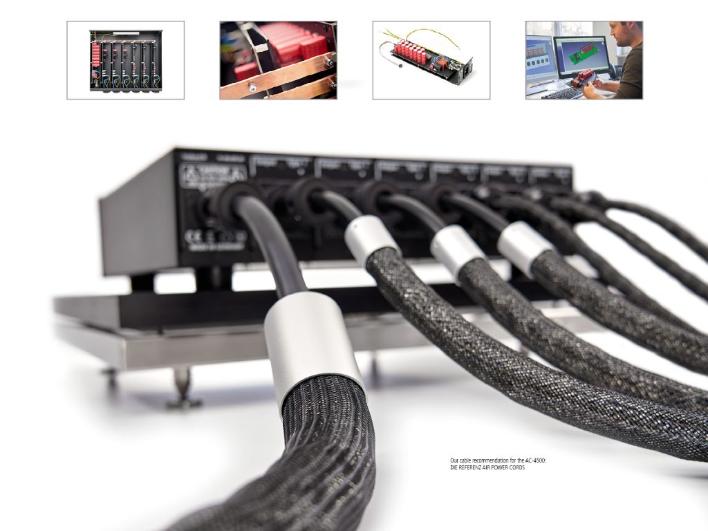 Mnoho domácích zařízení využívá pouze půlvlnu střídavého proudu. Z tohoto důvodu je sinusový průběh 50 Hz nesymetrický a vznikají stejnosměrné složky napětí (DC offset). To vede k "nesymetrickému" napájení připojených hi-fi komponent, což zase může vést k saturaci vnitřních transformátorů přístroje. Vedle mnoha nepříznivých zvukových efektů a zhoršené účinnosti to vede také k tomu, že transformátor vydává nepříjemný bzučivý zvuk. Srdcem každé napájecí stanice Reference AC-4500 je výkonné odrušení stejnosměrného proudu, které filtruje stejnosměrné komponenty z napájecího systému. To zajišťuje, že připojená zařízení jsou opětovně zásobována "symetrickým" proudem, což chrání transformátory před magnetickým nasycením. Tím se zabrání nežádoucím zvukovým efektům a transformátor přestane bzučet. Díky speciálně vybraným komponentům se na kvalitním zvuku významně podílí také potlačení stejnosměrného proudu. Zvláštní pozornost jsme věnovali také způsobu distribuce výkonu uvnitř modelu AC-4500. Distribuce je založena na kombinaci pevných měděných sběrnic a speciálních vysokoproudých konektorů bez pájení. Tato konstrukce zajišťuje extrémně nízký odpor smyčky, který tak poskytuje vynikající kapacitu dodávky proudu. Díky tomu je AC-4500 skálopevným základem audiosystému i při extrémně vysoké hlasitosti a dynamických pasážích.