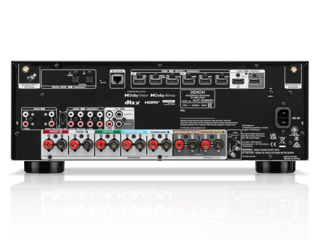 Ať už budujete systém prostorového zvuku nebo rozšiřujete svůj audio systém pro celou domácnost, AVC-X2850H nabízí výkon a flexibilitu pro snadné nastavení a nezapomenutelné zážitky díky 150 wattům na kanál z vysokoproudého zesilovače, flexibilitě 7.2 kanálů, podpoře Dolby Atmos® a DTS:X® a ultra detailnímu průchodu videa v rozlišení 8K.