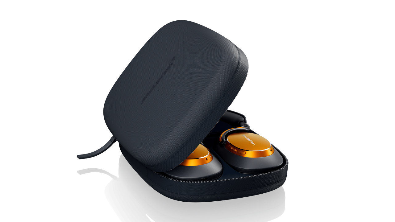 Antracitově šedá kůže Nappa na všech hlavních površích a sluchátka v metalické papájové barvě dodávají vzhledu novou eleganci, zatímco reliéfní logo McLaren na hlavovém mostu dotváří jejich styl.